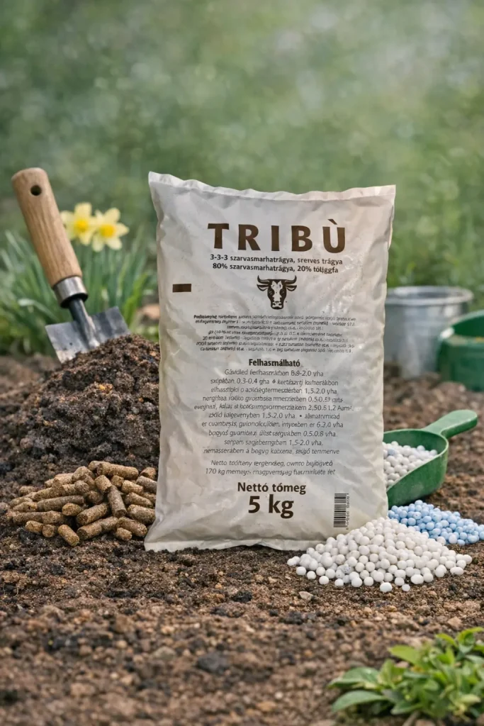 🌿 TRIBÙ szerves trágya – természetes talajjavítás, humuszképzés ⚡ N‑EXTRA 30‑5‑5 – gyors tavaszi indulás 🌱 HORTI grow 20‑20‑20 – kiegyensúlyozott növekedés 🍅 Soluvita 19‑19‑19 – virágzás és termésképzés támogatása