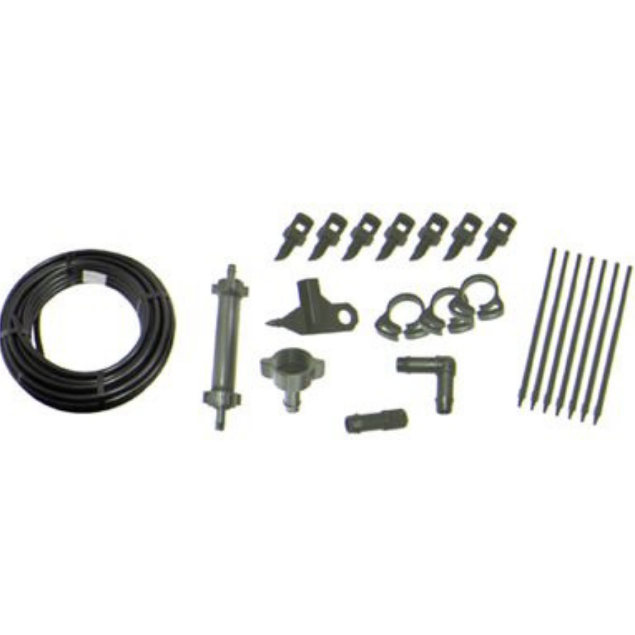 Az Öntözőkészlet TS7107 úgy lett összeállítva, hogy a telepítés ne legyen bonyolult. A tömlő, a könyök, a bilincsek, a menetes adapterek és a fúvókák logikusan illeszkednek egymáshoz.