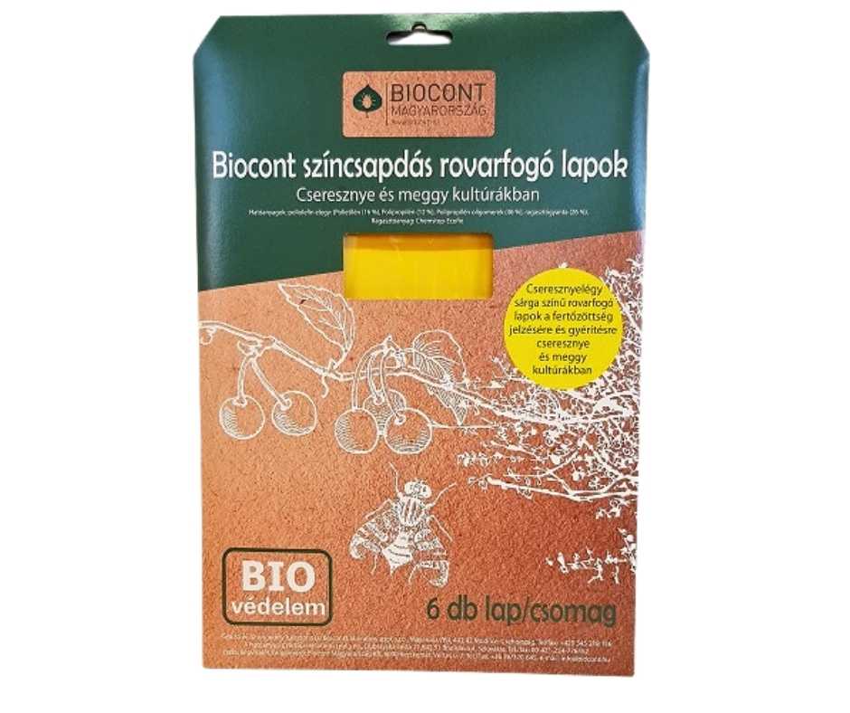 A Biocont cseresznyelégy színcsapda környezetbarát, vegyszermentes megoldás gyümölcsösök és kiskertek védelmére. A sárga ragacslapok természetes módon vonzzák és fogják be a károsító rovarokat.