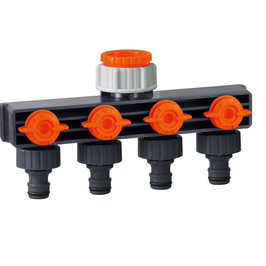 Csapcsatlakozó 4-es elosztó gyorscsatlakozóval – ha praktikus kerti öntözőelosztót keresel 4 db 1/2″ gyorscsatlakozóval, 3/4″ és 1″ belső menettel, több tömlő vagy öntözőeszköz egyidejű használatához, műanyag, tartós, költséghatékony megoldással, kiváló ár-érték aránnyal.
