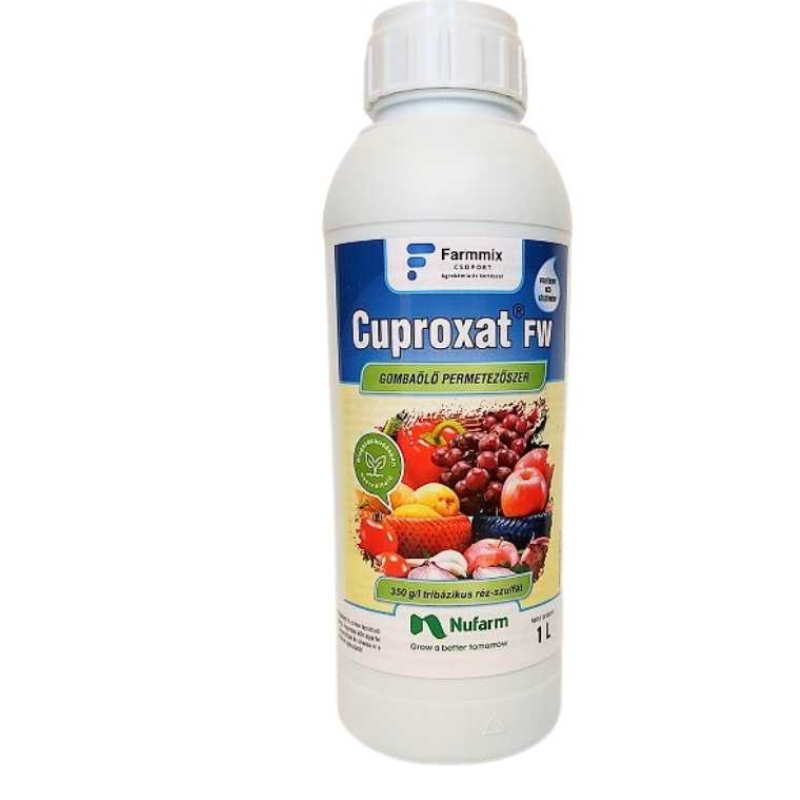 Cuproxat FW 0,2L gombaölő permetezőszer – 350 g/l tribázikus rézszulfát hatóanyaggal. Almatermésűek, szőlő, zöldségek. Varasodás, peronoszpóra, monília ellen. Egyedülálló esőállóság, 1 mikron alatti szemcseméret. III. forgalmazási kategória.
