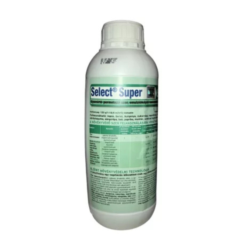 Az egyszikű gyomirtó Select Super professzionális megoldás minden magról kelő és évelő egyszikű gyom ellen. Ez a folyékony, speciális egyszikű gyomirtó szer nagy biztonsággal használható termék számos kétszikű kultúrában. A Select Super gyomirtó hatékonyan irtja a tarackbúzát, nádat, fenyércirkot, csillagpázsitot és árvakelésű búzát. Ez az egyszikű gyomirtó házi kerti felhasználásra is engedélyezett 60-70 ml/10 liter víz dózisban. A gyomirtó szer hatóanyaga az ariloxi-fenoxi-propionátok csoportjába tartozik, amely gátolja az acetil-S-CoA-karboxiláz enzim működését. A Select Super egyszikű gyomirtó csak gomba- és rovarölő szerekkel, valamint levéltrágyákkal kombinálható.