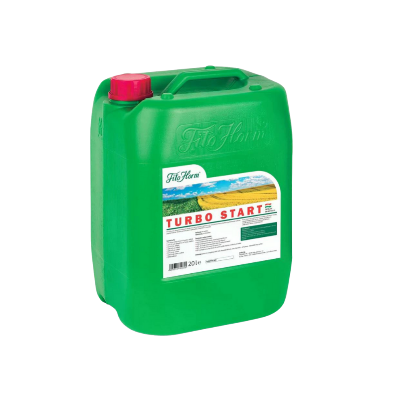 A FITOHORM TURBO START egyedülállóan magas foszfor- és cinktartalmának köszönhetően hatékonyan stimulálja a primer gyökérzet fejlődését. Speciális foszfor formulája már nagyon korán aktiválja a növény immunrendszerét, gyorsítja az anyagcserét, így a növény gyorsabban indul fejlődésnek. Bórtartalma fokozza a szénhidrátok beépülését és erősíti a sejtfalképződést, így a növények ellenállóbbak lesznek. UAN oldattal keverve a talajból is könnyen felvehető, nem kötődik le a talajkolloidokhoz.