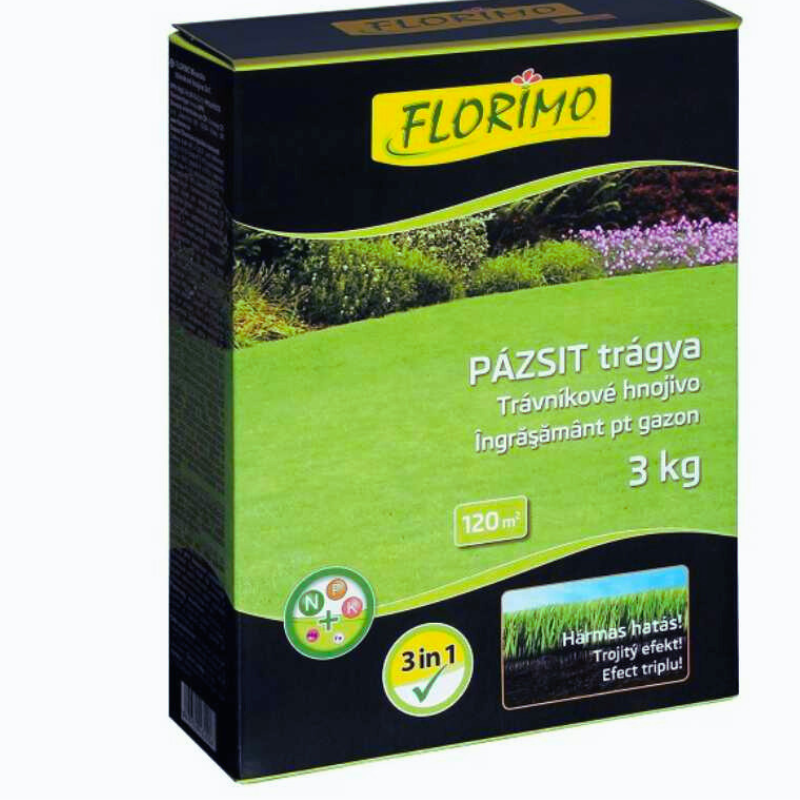 🌱 Gyeptrágya 3 in 1 – FLORIMO Pázsit Trágya 3kg Dobozos
