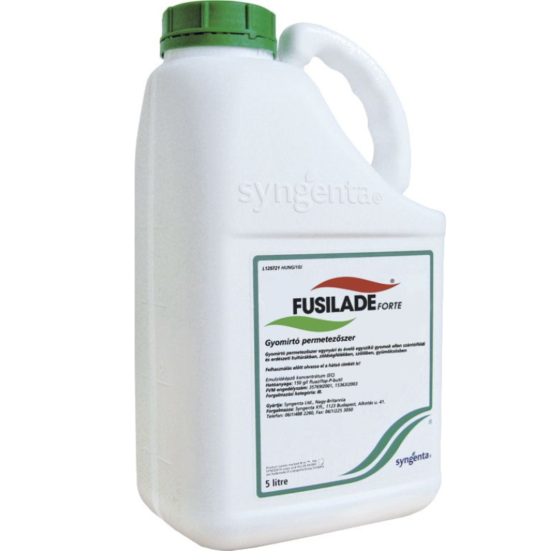 Márka: Fusilade Forte | Kiszerelés: 5 liter | Hatóanyag: 150 g/l fluazifop-P-butil | Házi kerti dózis: 50 ml / 10 liter víz | Kultúrák: Cukorrépa, napraforgó, burgonya, szója, bab, borsó, repce, lucerna, dinnye, zöldségfélék, mák, gyümölcsösök, szőlő, erdészet | Forgalmi kategória: II. kategória