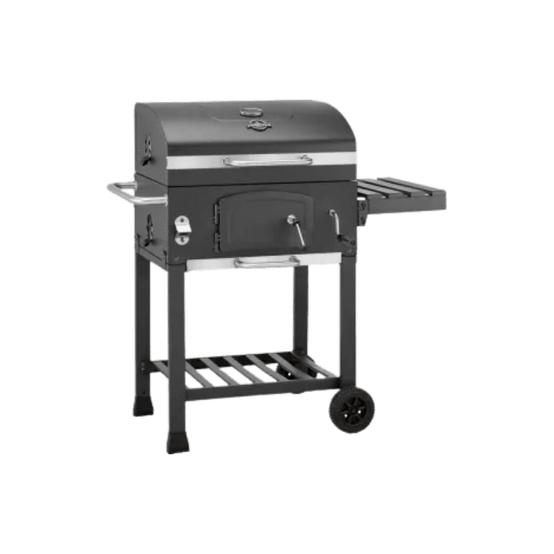 Az alsó nyíláson keresztül egyszerűen behelyezhető a faszén, valamint a grillezés után könnyedén eltávolítható a hamu.