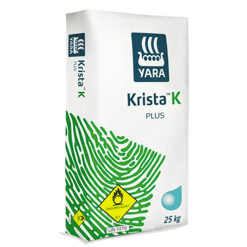YaraTera KRISTA K PLUS – nitrogént és káliumot tartalmazó öntöző műtrágya. Összetétel: N 13,7%, K₂O 46,3%. Vízben teljesen és maradék nélkül oldódik</strong> – bármilyen öntözési rendszer. <strong>Nitrát-nitrogén: közvetlenül felvehető, azonnal megindítja növekedést, nem kötődik le talajban. Kálium: javítja tápelem hasznosulást, növeli termést, javítja termésminőséget (szárazanyag, cukor, íz, szín). Alacsony N:K arány (1:3) – ideális érés időszakában. Alkalmazás: paprika, uborka, dinnye, paradicsom, minden kertészeti kultúra. Javasolt koncentráció: 0,05-0,15%. Eltarthatóság: korlátlan. ✅