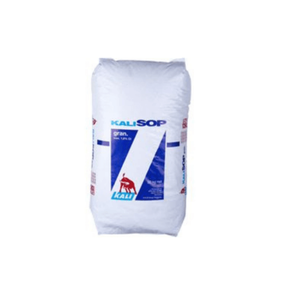 A KÁLIUM-SZULFÁT Vízoldható prémium minőségű, magas koncentrációjú (50% K₂O + 18% S) kálium-szulfát műtrágya, amely 100%-ban vízoldható. Szulfát kötésben tartalmazza a káliumot és a ként, így gyorsan és hatékonyan biztosítja a szükséges tápanyagokat. Az alacsony kloridtartalom miatt ideális választás klorid- és sóérzékeny kultúrákban.
