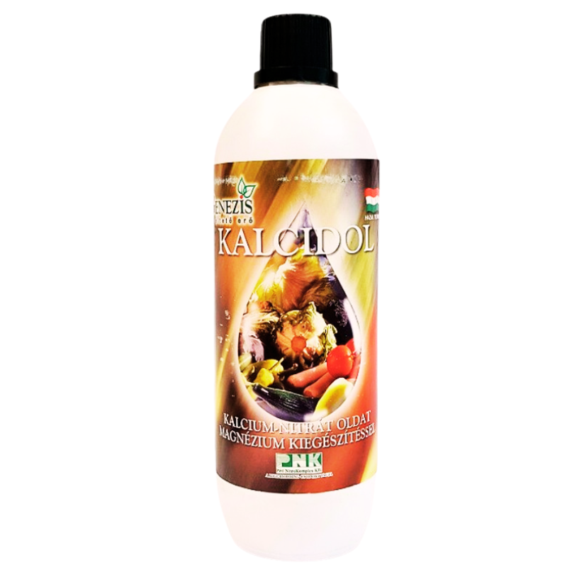 Kalcidol 1/1 🌱 Kloridmentes, gyorsan ható talaj- és levéltrágya. Mészhiánybetegségek gyors és hatékony megszüntetése, optimális kalciumszint kialakítása. Kalcium + magnézium – folyamatos lombon keresztüli utánpótlás. Előnyei: fokozza gyökér aktivitását, kedvezően befolyásolja szénhidrát és nitrogén anyagcserét, megfelelő sejtfal szerkezet, fokozza betegség-ellenállóságot, magnézium fokozza klorofill képződést. Alkalmazás: alma/körte tárolhatóság, keserűfoltosság/húsbarnulás megelőzés, cseresznye kirepedés elkerülés, paprika/paradicsom csúcsrothadás megelőzés, káposzta belsőlevél barnulás. Eltarthatóság: 3 év