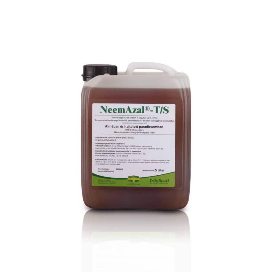 Keresel egy természetes, környezetbarát rovarölőt széles hatásspektrummal? A NeemAzal-T/S a te megoldásod. Ez az azadirachtin hatóanyagú készítmény a trópusi neem fa magjának kivonata, szívó, rágó, aknázó kártevők – levéltetű, molyok, liszteskék – ellen. Mélyhatású, felszívódik a levéllemezbe, rejtett életmódú kártevők ellen is hatékony. Rezisztencia törő – egyedi hatásmód.