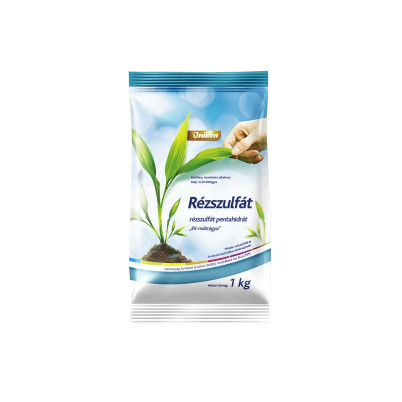 Rézszulfát 1 kg – Rézszulfát pentahidrát (EK-műtrágya) rézhiány gyors kezelésére talaj- és levéltrágyaként.