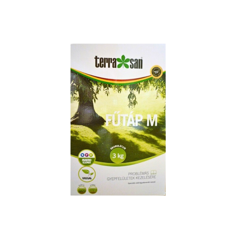 A Terrasan trágya Gyep mohacsökkentő egy speciális, fokozott vastartalmú EK-műtrágya (NPK 10-5-5 + 6% vas), amelyet kifejezetten a gyep mohásodásának visszaszorítására és az élénkzöld szín elérésére fejlesztettek ki. A vas jelentősen javítja a klorofillképzést, így a pázsit friss, egészséges színű lesz, miközben a moha természetes módon visszaszorul. A megfelelő tápanyagellátás mellett a gereblye vagy gyepszellőztető segít eltávolítani a gyepfilcet, így a gyep sűrűbbé és ellenállóbbá válik.