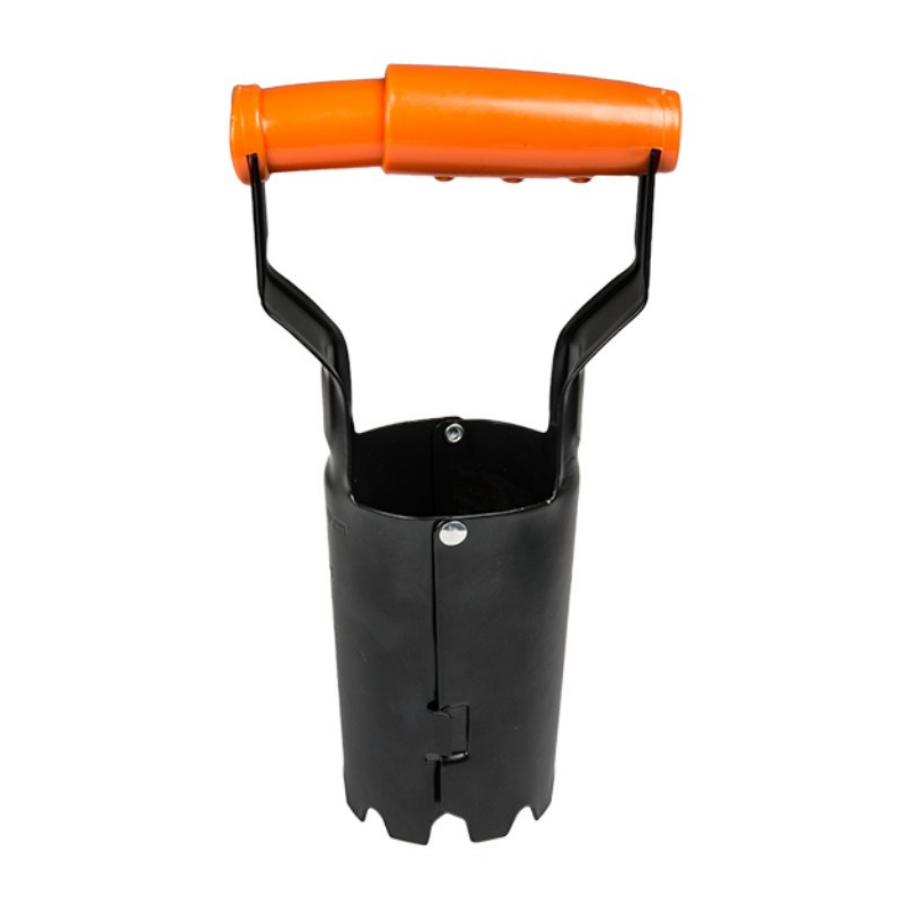 Ültető palántázó henger rugós De Luxe – masszív, acélból készült hagymaültető/palántázó, amellyel a növényeket földlabdával, sértetlen gyökérzettel tudod átültetni. Alul kb. 6 cm, felül 9 cm széles, magassága 23 cm, így ideális hagymák, palánták, kisebb évelők ültetéséhez.