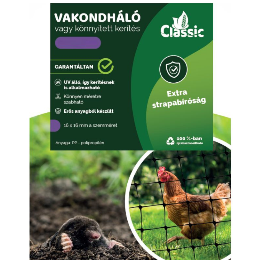 - Típus: Classic műanyag vakondháló / könnyített kerítésháló