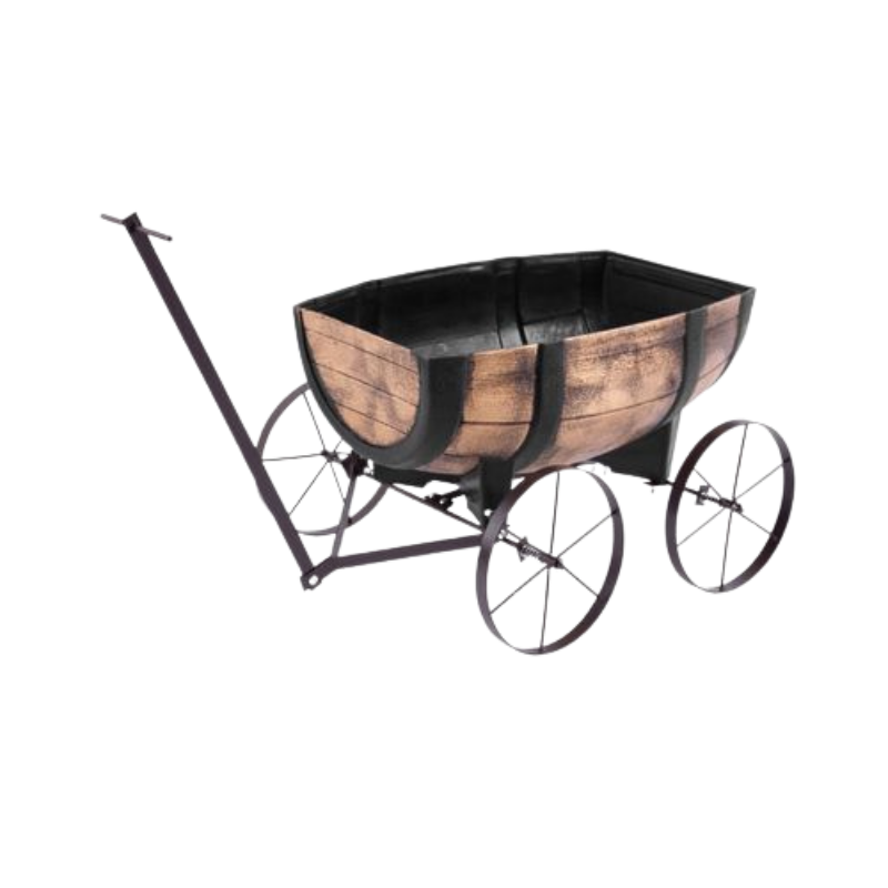 Virágcserép Strend Pro Woodeff – 41,5x29x19 cm, whiskey hordó kocsi, 4 kerékkel